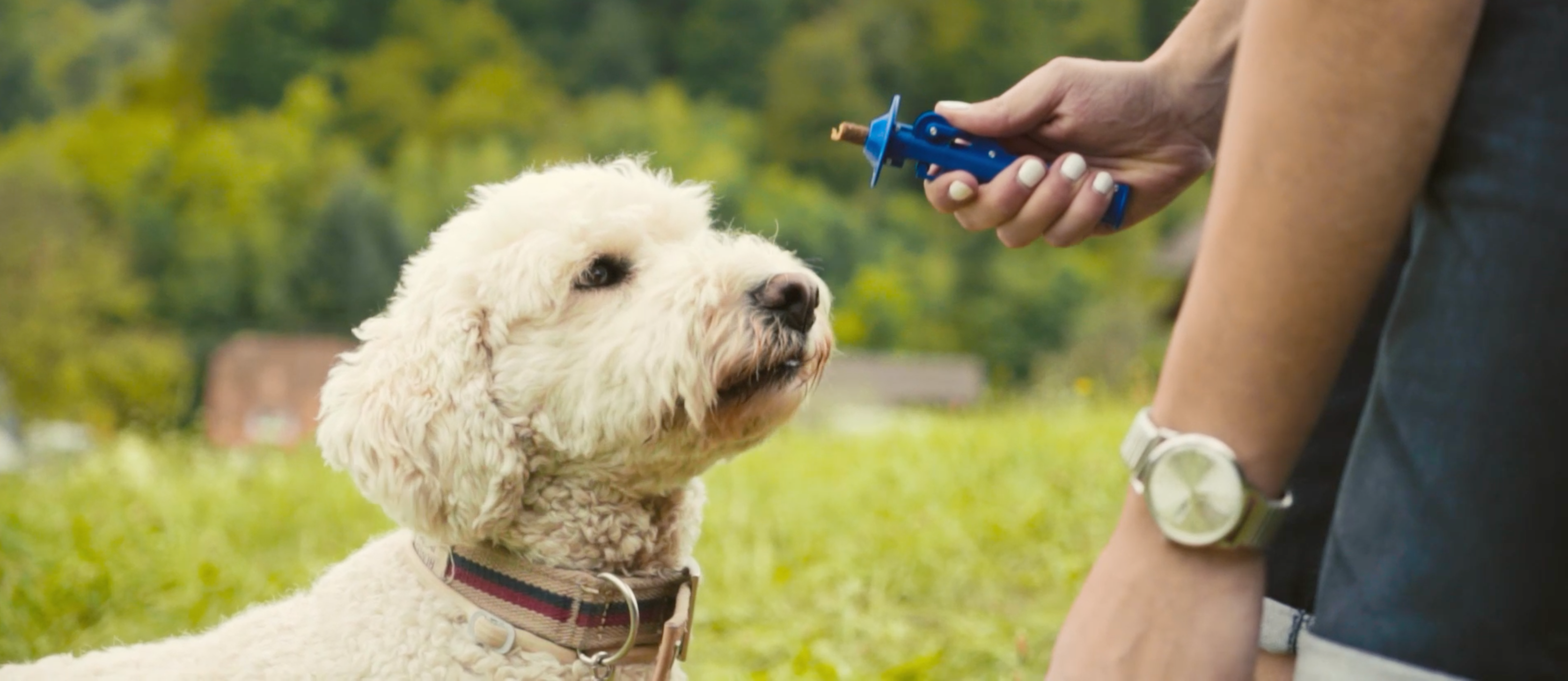 Mit dem foodpen kannst du ganz einfach die Aufmerksamkeit deines Hundes erlangen und die Belohnung individuell portionieren.